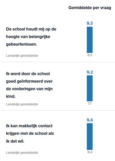Ook in het laatste tevredenheidsonderzoek onder ouders kregen we de onderstaande mooie cijfers voor onze communicatie en bereikbaarheid en daar zijn we natuurlijk trots op!