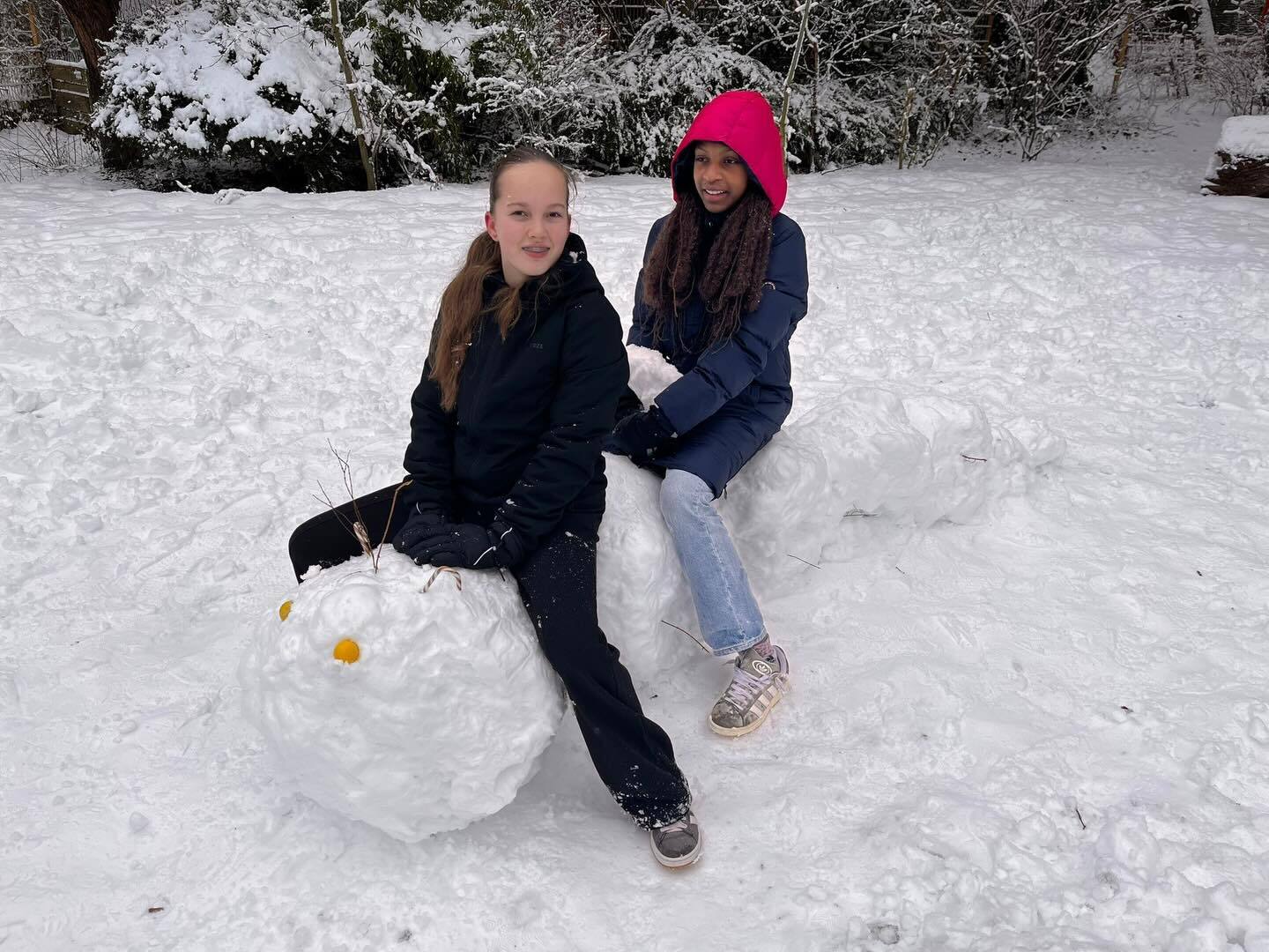 Daarnaast bracht de sneeuw ook veel mooie plaatjes en plezier met zich mee. Er werden rondom de school mooie sneeuwpoppen gebouwd en sneeuwballengevechten gehouden. Ook tijdens het online onderwijs gingen de leerlingen naar buiten, want onze docenten kunst pasten hun lessen aan en gaven als opdracht om een atypische sneeuwpop te maken. Dit zorgde niet alleen voor veel sneeuwplezier bij de leerlingen, maar ook voor een vrolijk straatbeeld!