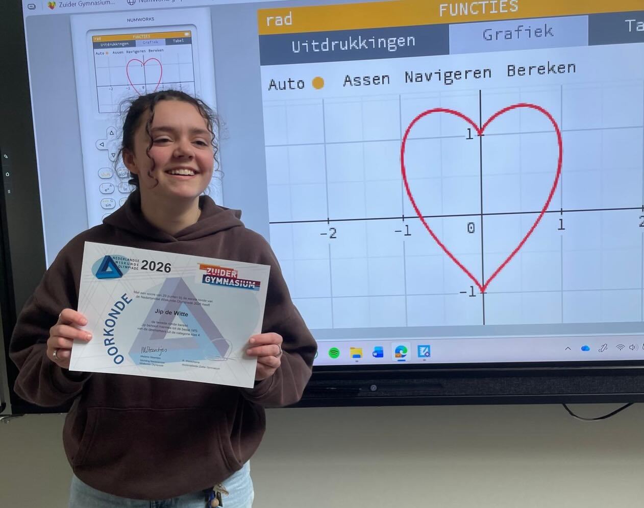 In januari deden 24 leerlingen uit klas 2 t/m 6 hun uiterste best tijdens de voorronde van de nationale Wiskunde Olympiade en intussen is de uitslag bekend. Jip, Kristin en Teun zijn door naar de tweede ronde! En extra bijzonder: de 13-jarige Kristin heeft als vierdeklasser alle open vragen en op één na ook alle meerkeuzevragen goed weten te beantwoorden.
