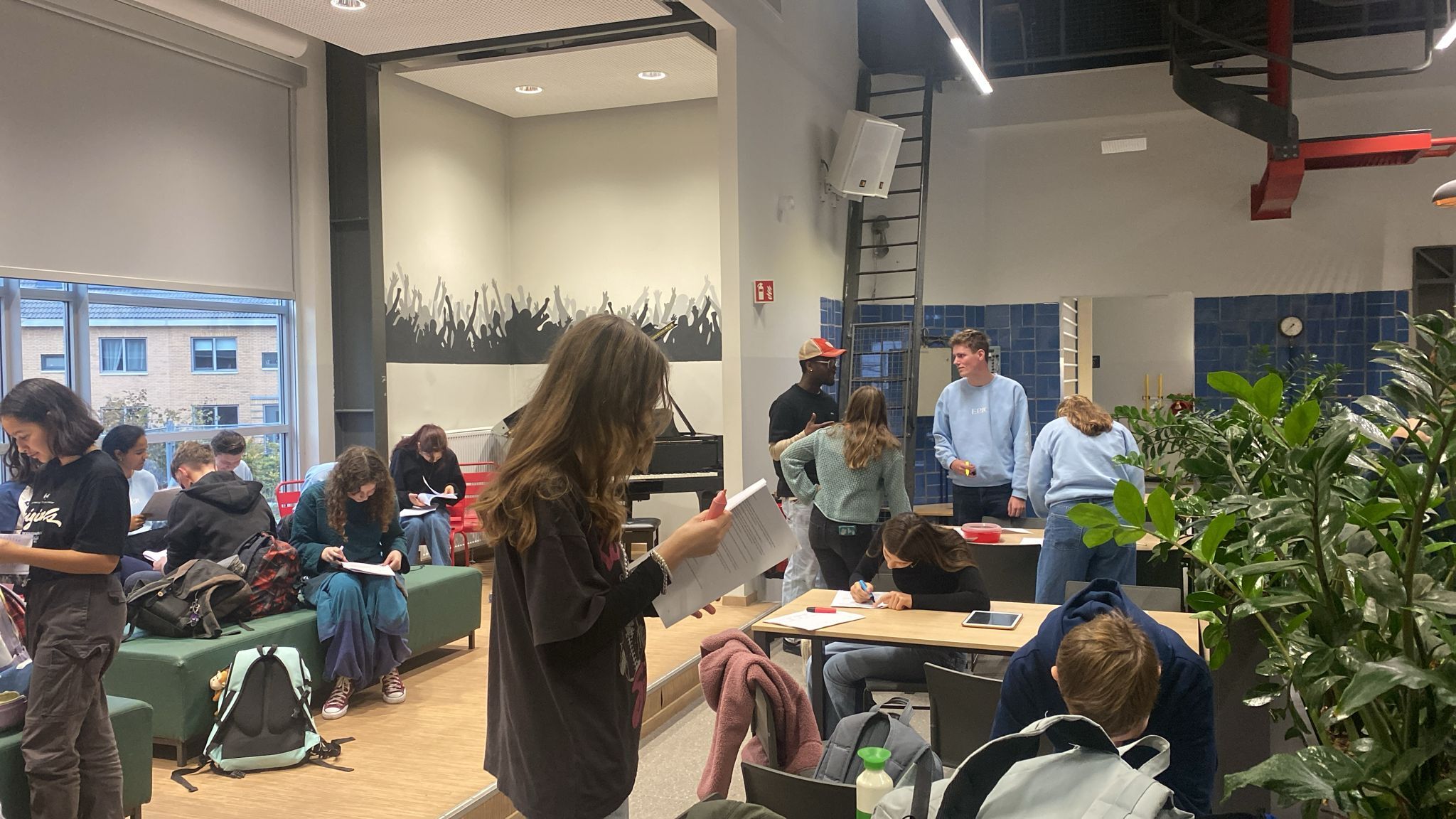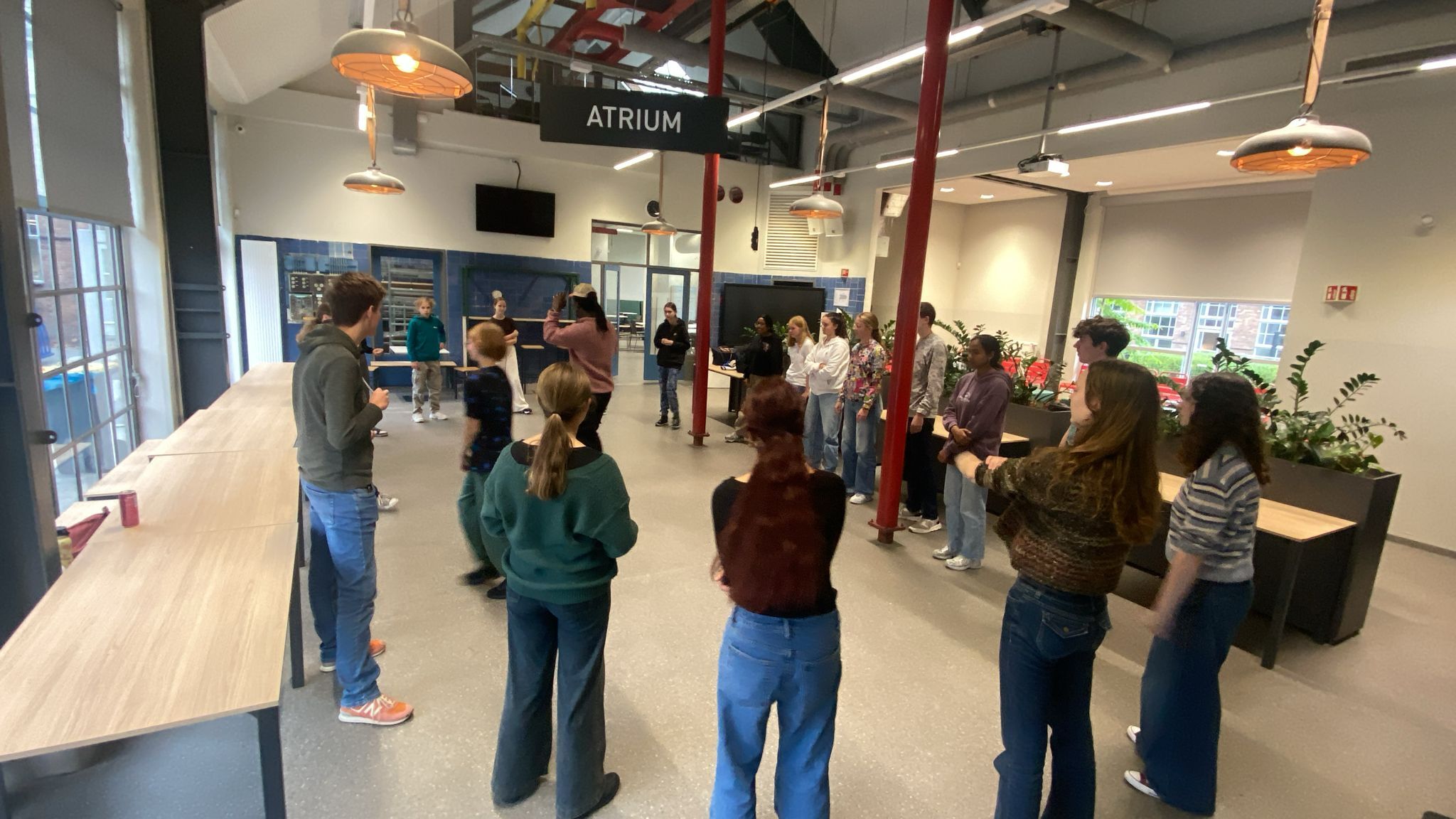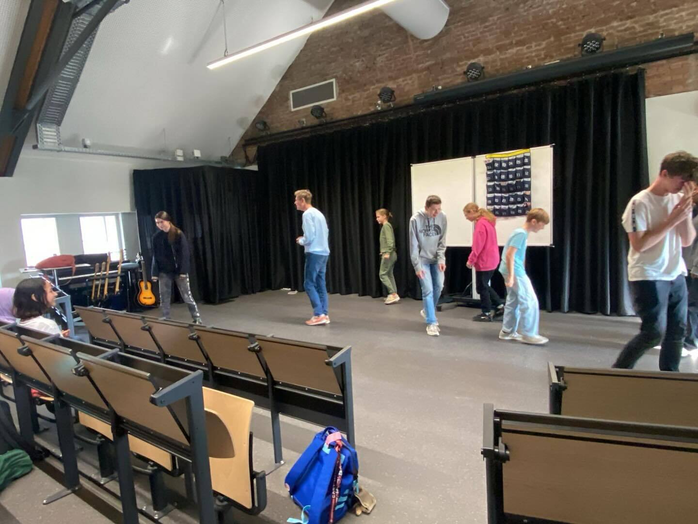 Voor toneel gaat het niet om losse workshops, maar verandert ons atrium om de week op vrijdagmiddag in een repetitieruimte. Een groep enthousiaste leerlingen komt dan samen om onder professionele begeleiding toe te werken naar een voorstelling, die later dit schooljaar zal plaatsvinden.