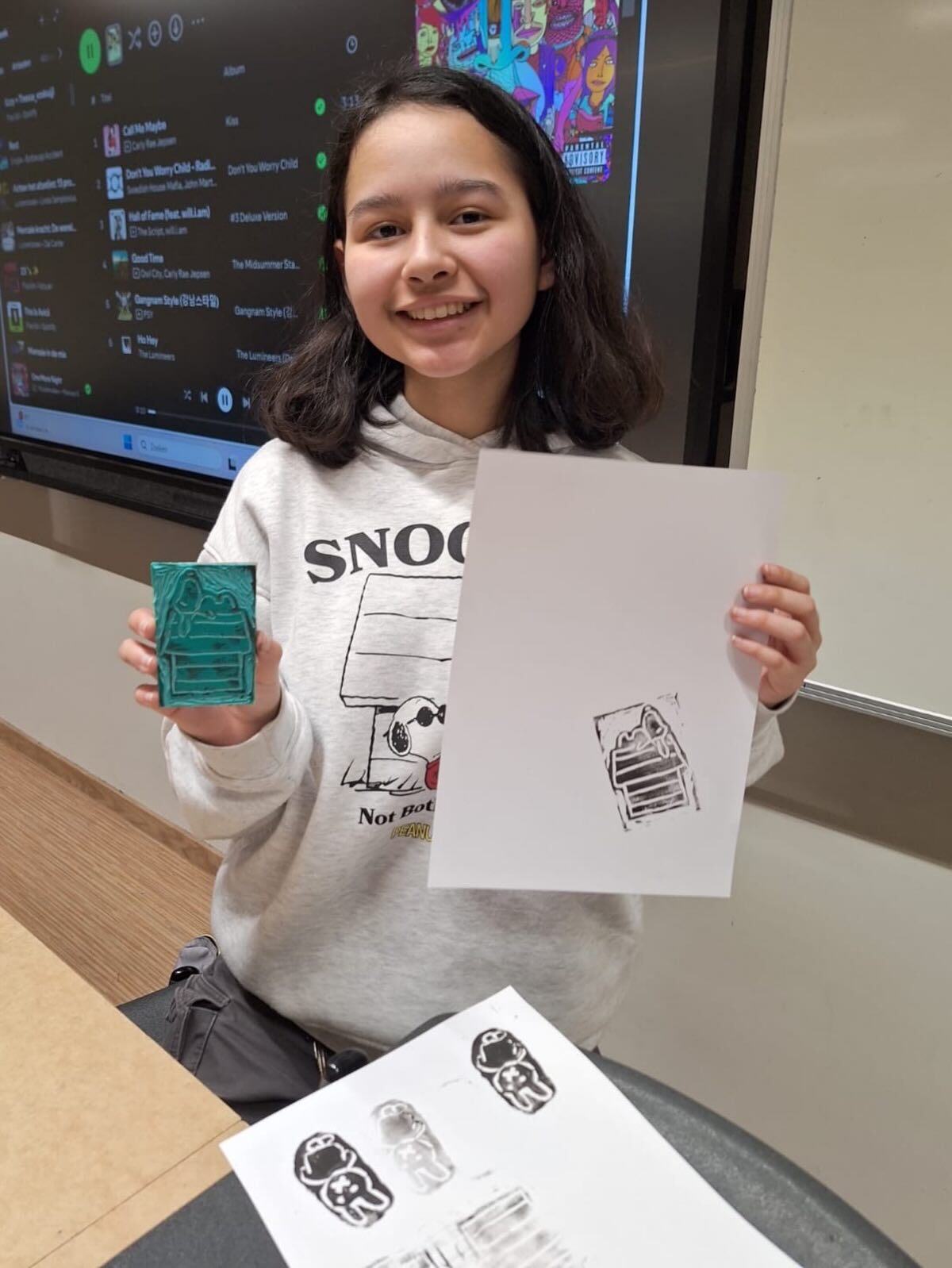 Bij de kunstworkshops gaan de leerlingen elke keer op een andere creatieve manier aan de slag. Bij de workshop 'stempel maken' ontwierpen en maakten de deelnemers bijvoorbeeld hun eigen unieke watermerk. Daarbij was alles mogelijk: een stempel van hun favoriete serie, een tof symbool, hun eigen naam. Na afloop gingen alle leerlingen naar huis met een zelfgemaakte stempel én een inktpad, klaar om overal hun eigen unieke afbeelding achter te laten.