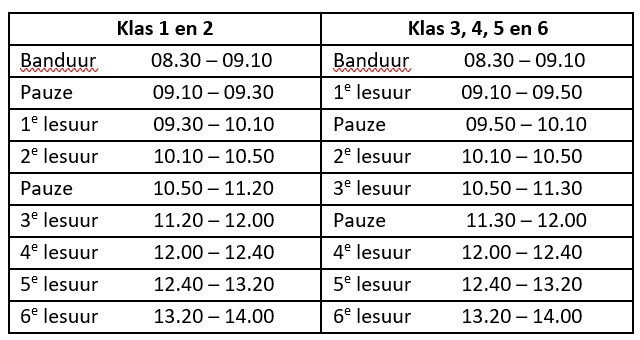 Soms werken we met een verkort rooster, bijvoorbeeld vanwege een studiemiddag.